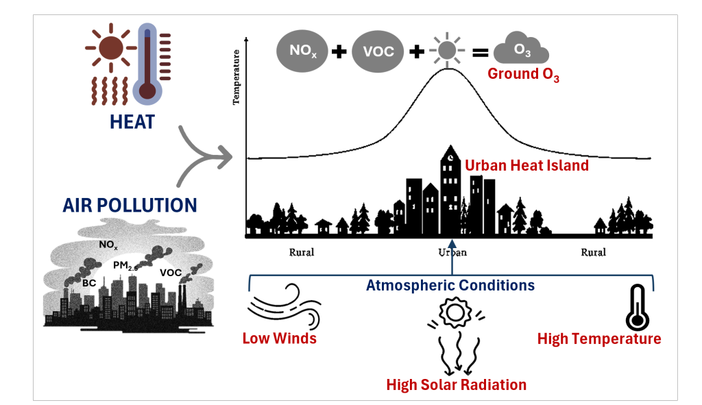 The interaction of heat and air pollution manifests most directly through warm nights during hot summers, when high night-time temperatures suppress atmospheric mixing and limit the dispersion of locally generated pollutants. With the increasing frequency and intensity of heatwaves, and a lower focus on managing air pollution during summers, it is critical to dive deeper into this relationship to understand how best to develop policies that address both. While the combined impacts of heatwaves and air pollution are beginning to be understood, the way they interact to amplify their individual impacts through atmospheric chemistry pathways is less studied. This largely happens in two interconnected ways: